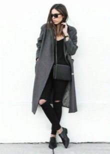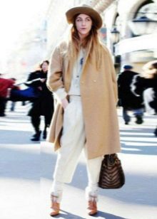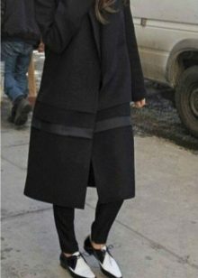 With short coat models, you can safely combine highly shortened trousers, but with longer models you should wear classic-length trousers, a 7/8 leg is allowed. In the latter case, shoes need to be selected on a flat sole - stylish loafers, brogues, chelsea. In other variations, a low stable heel or wedge is welcome.