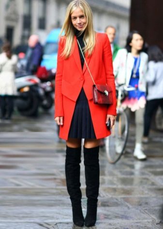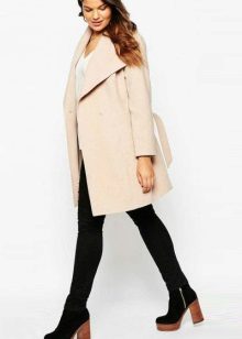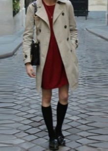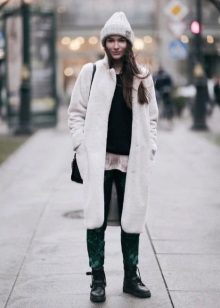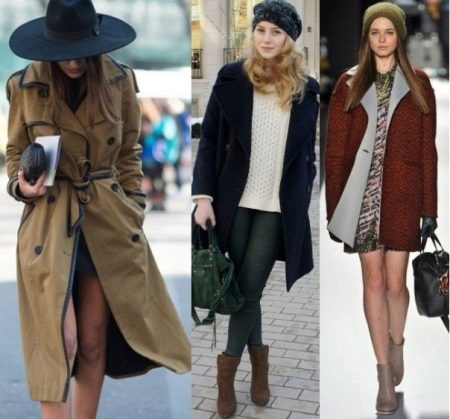 A combination of a knee-length coat and boots of a traditional length (just above the middle of the calf) can be called classic. Flat models can be combined with fitted options, with shortened coats, with a duffle coat style.