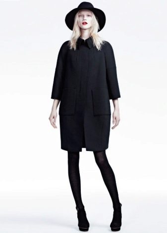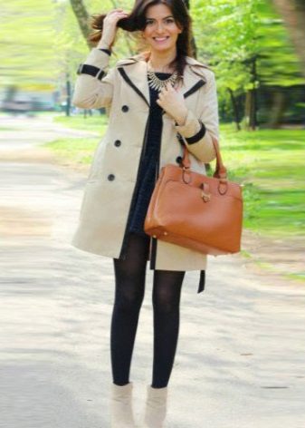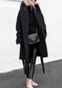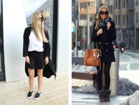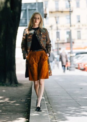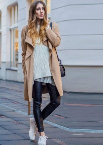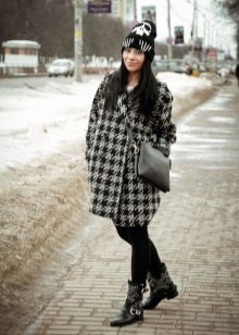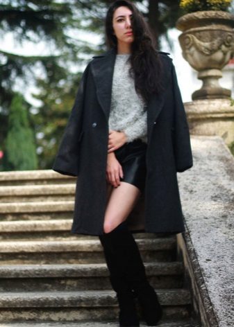The combination of a coat with shorts allows you to create contradictory, but impressive images. If you choose a model to the middle of the thigh with a bright print and complement it with black or body tights, then any classic coat model will be a wonderful end to the outfit. Flat shoes and an oversized sweater will make this look incredibly stylish.