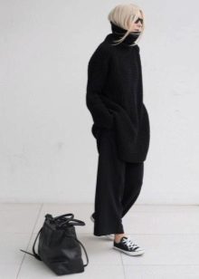 It is also important to adhere to the contrast in color. A bag or backpack should in no case coincide with the color of the coat, unless the whole image is selected in one single tone, for example, total black.