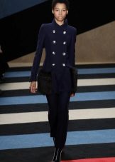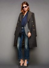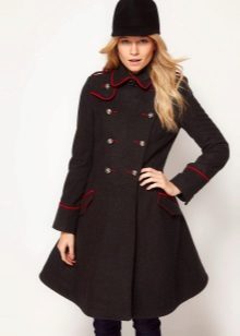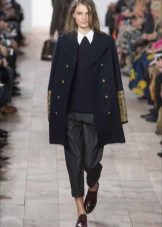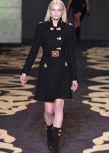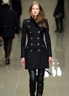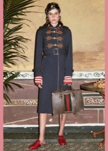 Important details of the image of the military are metal buttons. Outerwear is decorated with gold cords, edging, rivets, belts. Designers also use decorative medals and orders. The uniforms of the coat are added by stripes, cords and braid.