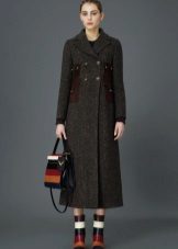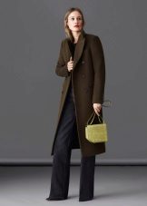 In the second version, comfortable trousers and a jacket are chosen under the coat, which, in combination with a large bag, give the image of a traveler.