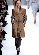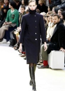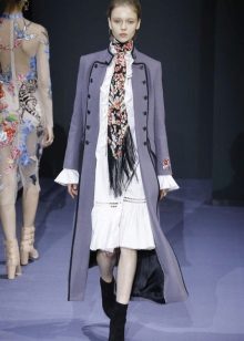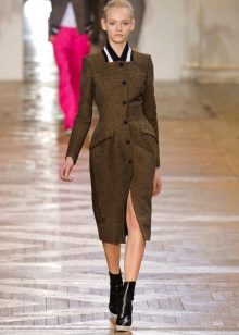 When choosing a dress, stylists recommend choosing a case and tight-fitting mini. This coat goes well with feminine skirts. For example, with folds or a little flared to the bottom.