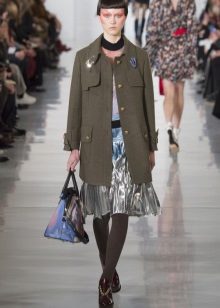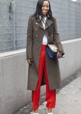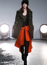 Military allows you to combine different styles and trends. There are general recommendations for coat silhouettes. So, a loose cut coat will look good in combination with skinny pants and jeans.