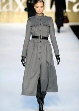 The style of a military coat is determined by the straight and trapezoidal silhouettes. The strictness of the cut is emphasized by turn-down wide collars, stand-up collars, shoulder straps, patch pockets of very clear shapes.