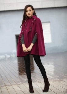 The youth military coat is distinguished by fashionable shades of fabrics: purple, pink, red. And the girls boldly combine glamor and retro styles in one look.