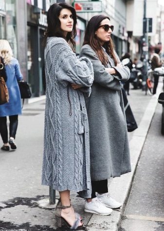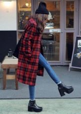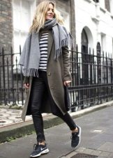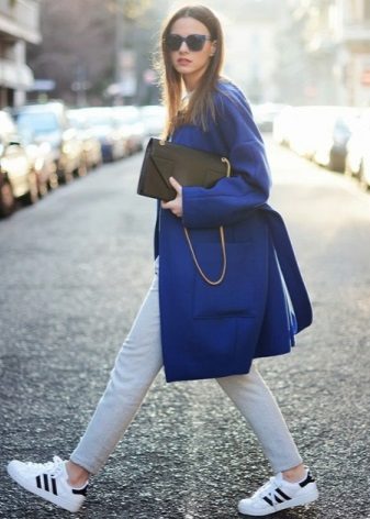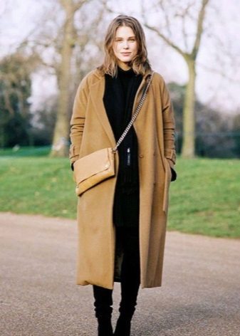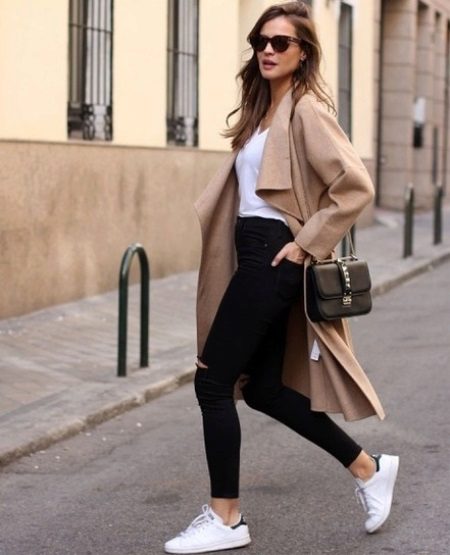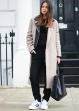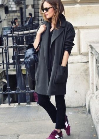 Elongated models with a flared hem or a coat in retro style cannot be combined with sports shoes, sneakers and boots, but they allow high boots with flat soles.
