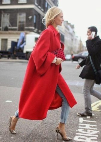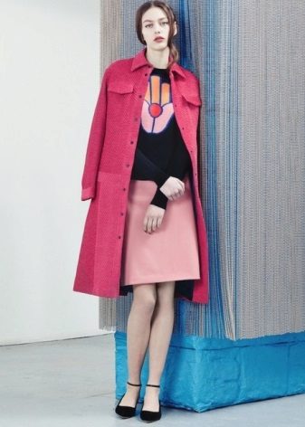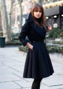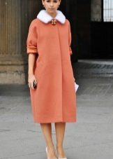 Coat length midi - until the middle of the calf, it is incredibly feminine and stylish. The model in a retro style, with a flared bottom, can only be combined with skirts, and with trousers and jeans it looks out of place, unlike a straight-cut coat.