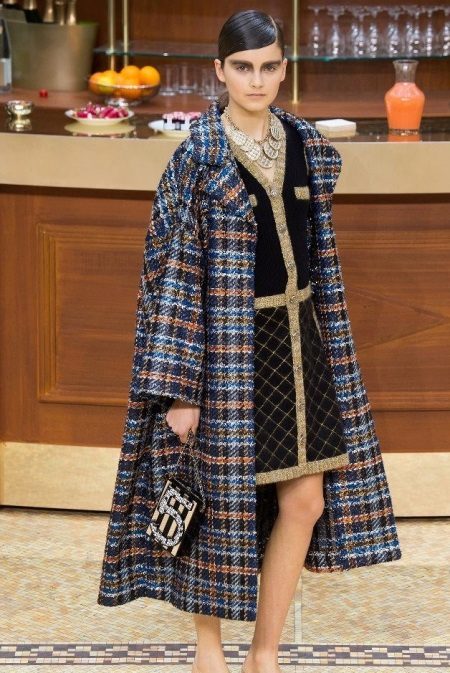 Coat Chanel made in the best traditions characteristic of this brand, having checkered prints and colorful patterns.