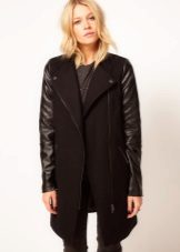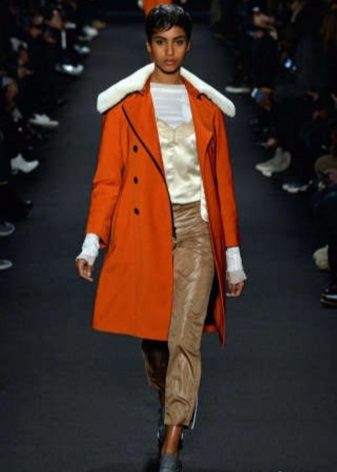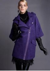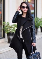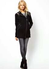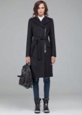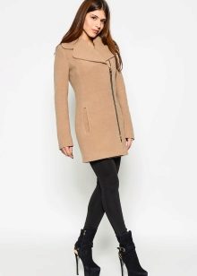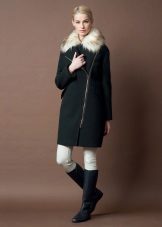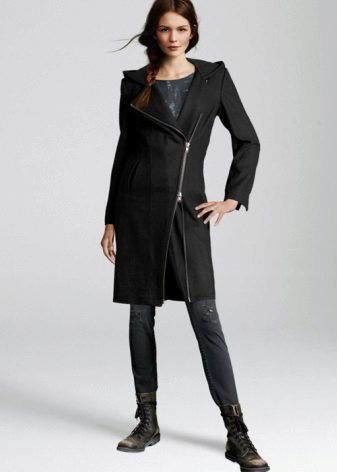 Also with such a coat, a long skirt will look good, under which high boots or classic shoes are selected. For coats with a slanting lightning, the ideal companions are high leather boots or boots.