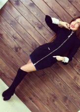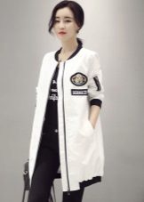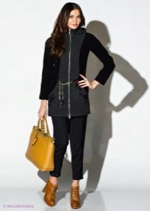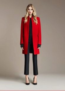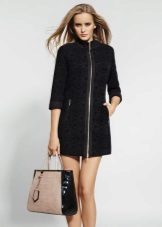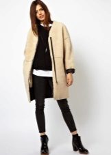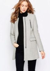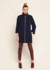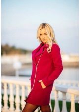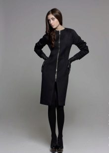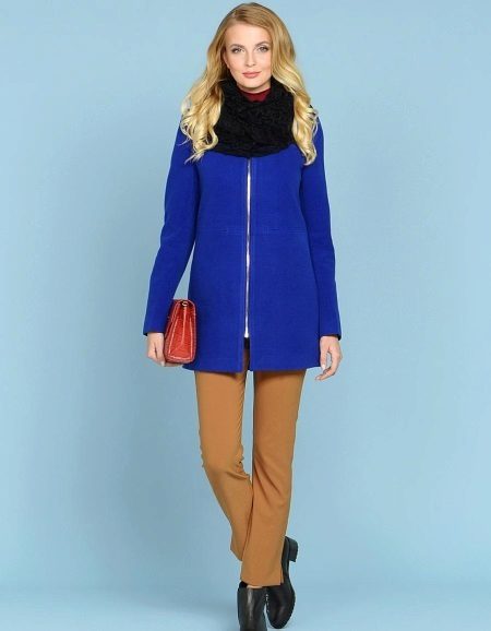 A coat with a zipper is combined with different types of clothing. Most often, pants and jeans are worn under it. To enhance the sporty style, sneakers or sneakers are selected. Shoes and ankle boots on the platform are suitable for casual style. For business style, under such a coat you can put on a dress - a case or a straight-cut office skirt. This combination will look very good with a straight coat and trapezoidal clothing. It is necessary to pick up bright and contrasting scarves or scarves to it. You can use a scarf collar and cashmere stole. This will revive the image.