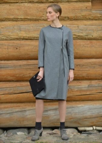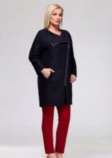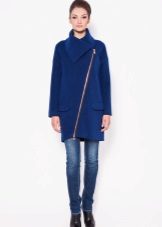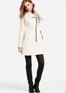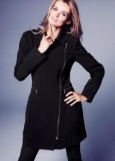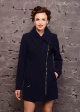 Oblique zipper on the coat is also a common option. For the classic style, this use of the clasp only played in his favor. With strict forms, the model has gained newness. Designers in search of new images suggested using double zippers. These parallel lines added a coat of originality. Models may have a stand-up collar.