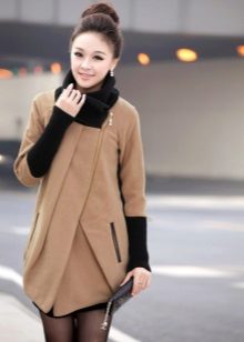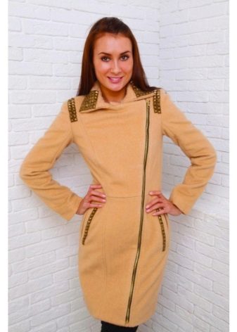 The most noticeable representative of such outerwear is a coat with a slanting zipper. Such an asymmetric approach allows you to get around the main problem for many women: to divert attention from the figure. Gold and silver zippers will soften the appearance of the coat of the darkest shades.