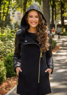 Another popular style is a coat with a hood. In such clothes you can be ready for any weather. The hood can be made of fabric of a completely different texture than the coat. Lightning is also located in the middle of the model. Most often, just such a coat is chosen by girls who value practicality and style at the same time.