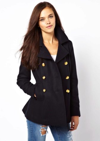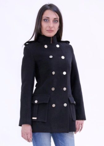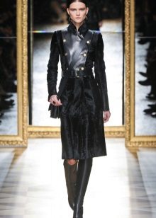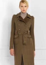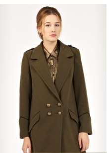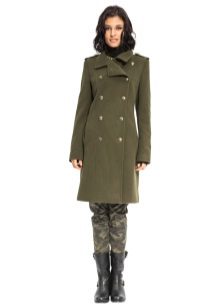 Military. Deliberately coarse strict forms, for example, like a greatcoat, dark colors, as well as pockets, cuffs, a collar decorated with metal elements, are all part of the military style. Such a coat can be safely combined with delicate things, this will give the bow an original contradiction.