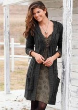 A coat dress is something unusual, but not very warming. An extended jacket made of knitwear or silk, denim, wool, velvet and jacquard. It can be both outerwear and an independent thing, worn immediately on the body. The styles can be different, with long or short sleeves, collars, a hood or without it. Silhouettes are found not only tight-fitting, but also free.
