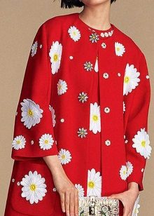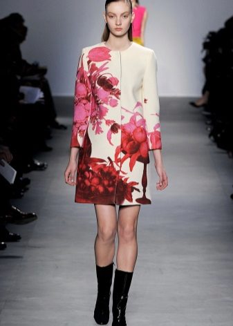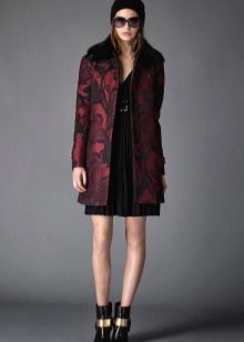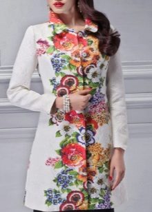 Floral prints and completely borrowed texture and style from furniture. Do not forget that a drawing that attracts attention is an independent decoration, so the coat should be the simplest style without unnecessary details.