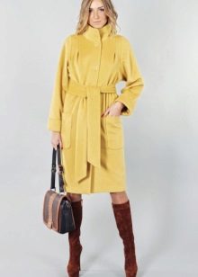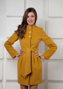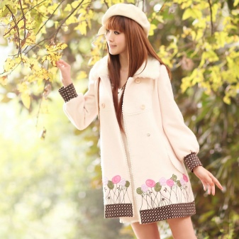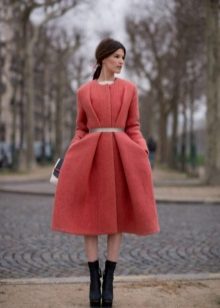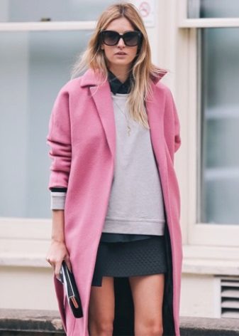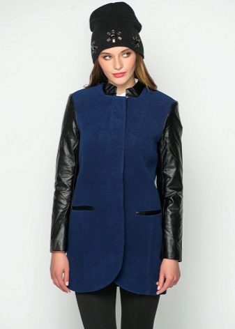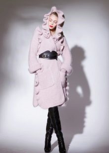 Such coats are performed in bright colors, for example, pink and yellow, and also combine materials using variegated inserts of wool, suede, leather.