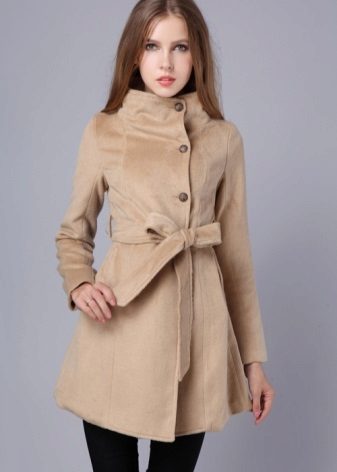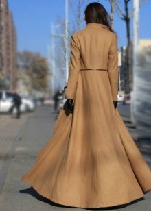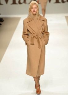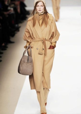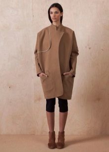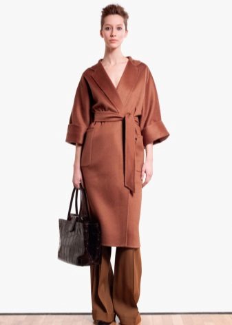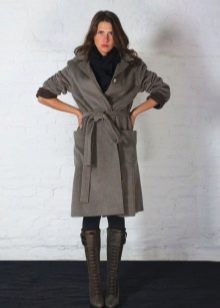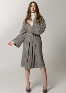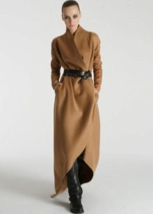 The coat-coat does not have buttons and fasteners, but there is a belt. A long wraparound coat has an interesting shape and appearance, and is a good acquisition for active movement around the city. The most relevant color for such a coat is beige or gray.