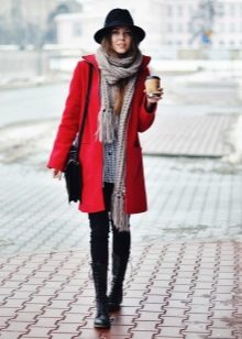 Knitted and fur scarves, silk scarves are combined with a coat. Wide-brimmed hats or a knitted hat depending on the style. You can safely wear knitted or leather gloves of different lengths. Of the most relevant accessories - belts and straps of different models, brooches on the lapel.