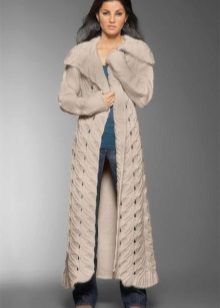 The fashionable knitted coat this fall has a large knitting technique. The product is below the knee length combined with a leather belt.