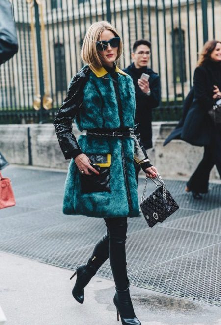 A short-haired fur coat is a novelty of the season. Together with leather inserts, it will be trendy, but completely incompatible with other bright elements of the wardrobe. Therefore, such a coat is best combined with neutral jeans and shoes.