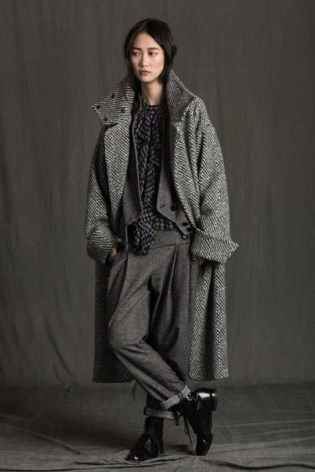 This year, a long coat with a one-piece collar diverging to the bottom is considered fashionable.