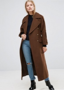 - Classic long coat. Ideal option for a coat in a men's style that will look good on tall girls. It differs from the female in a voluminous silhouette and the absence of a pronounced waist line, the belt is also absent.