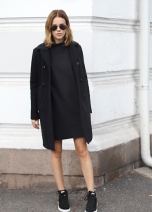A boyfriend coat will look good with a dress of almost any cut, a lavish condition - it should not peek out from under the coat. An exception can be made only for shortened models that are permissible to wear with a dress on the floor.