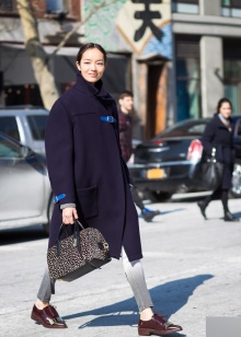 High-heeled ankle boots or stocking boots are great. In the spring, wear a voluminous coat with pumps, and the most daring fashionistas can complement it with platform sandals worn over beautiful socks.
