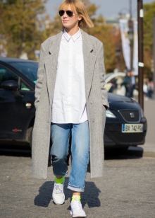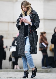 A coat in the style of boyfriend allows you to emphasize the elegance of a female figure, due to its volume you will look slimmer. The main thing is to observe proportions correctly, combining it with clothes strictly in shape.