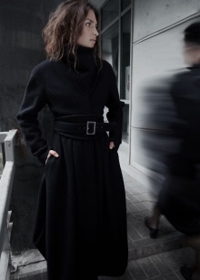 Usually, the bottom of the skirt of the coat is rather narrow, which makes movement a bit difficult, but there are also models sewn according to the principle of a blossoming bud, with folds on the hem. The length of the skirt can be different - from the classic medium length to the youth model with a mini-length skirt.