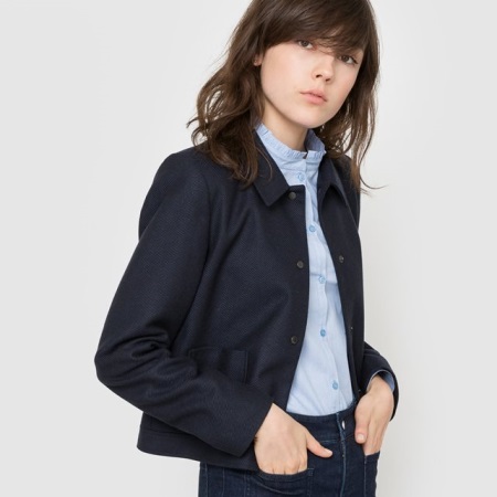 An important distinguishing feature is the length of the product. The classic version of the coat jacket implies the length to the line of the hips. It can also vary depending on the style or creative design of the fashion designer.