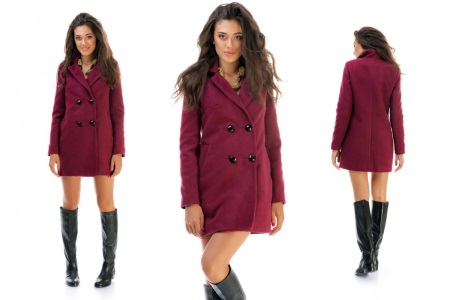 Some options may not have collars or lapels. Sometimes an extraordinary neckline goes into a fancy clasp line. Interesting look double-breasted version with high waist, made in bright colors. In choosing shoes for such an ensemble, attention should be paid to high-heeled boots or ankle boots. These shoes will emphasize the feminine and add to the image pleasant shades of romance.