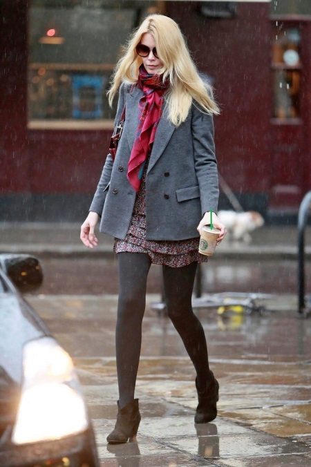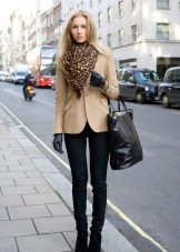 Shoes with a coat jacket harmoniously look at ankle boots and any shoes with heels or flat shoes, moccasins and short boots. Lightweight silk shawl will add elegance.