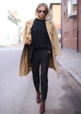 Readington (a double-breasted knee-length model) with a jacket collar or a stand can easily be combined with a classic business suit and sports shoes. Adding a rectangular clutch or portfolio for documents to the image, redington will give confidence and business chic.