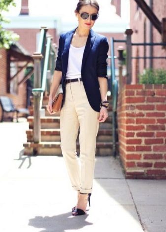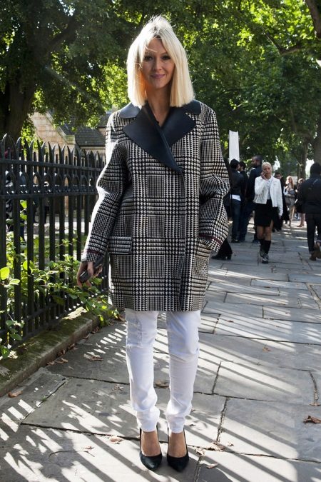 Options in a cage never go out of style. In the case of a coat jacket, white straight jeans and classic pumps with low heels will perfectly complement this option.