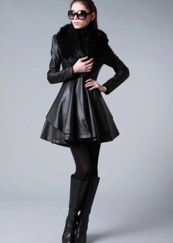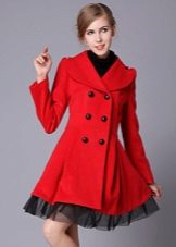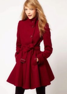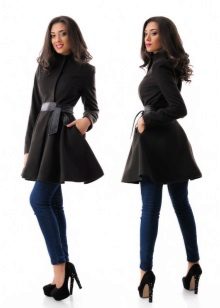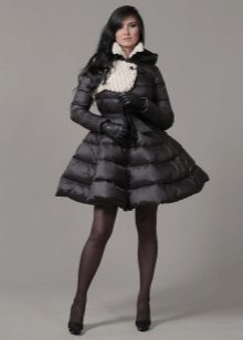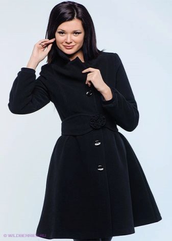 A coat with a wide bottom looks best with skirts whose length does not exceed the length of the product itself. Thanks to this, the coat itself, in combination with dense insulated tights, looks like a warm winter dress.