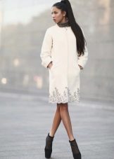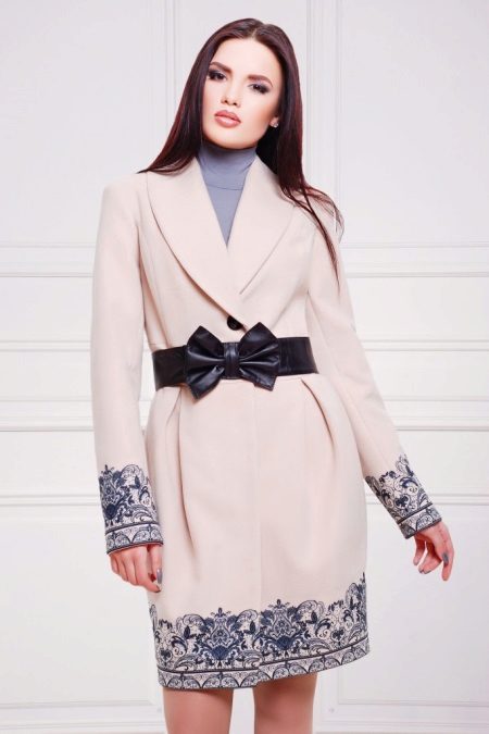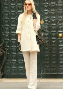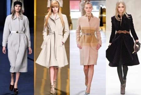 This coat model can be easily supplemented with various feminine accessories, for example, light elegant stoles and knitted scarves. The fur boa will become a stylish accessory, and handbags of different models will help complete the look.