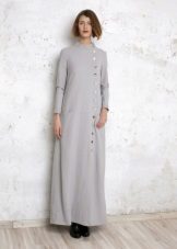 The coat can also be distinguished by a collar, which can be a double-breasted folding collar, a stand-up collar or even be completely absent, representing a model with a rounded neckline.