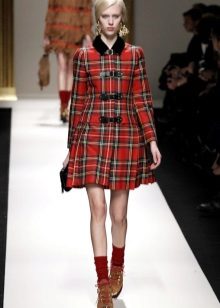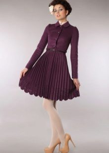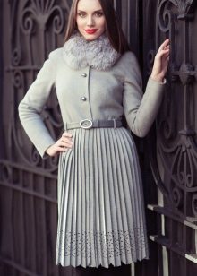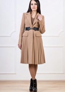 Coat-dress with a pleated skirt looks like a product in the style of a school uniform, emphasizing the femininity and sophistication of the taste of its owner.