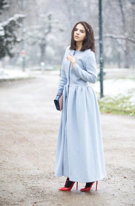 The fitted models of the coat of a long silhouette look elegant and elegant, but they are less practical. Nevertheless, a woman in such a coat looks incredibly impressive, especially with high-heeled shoes.