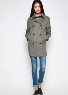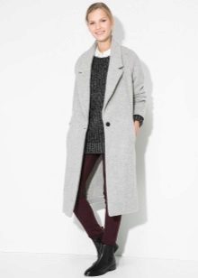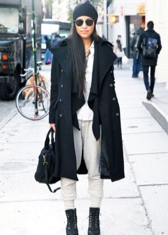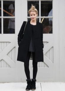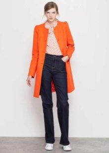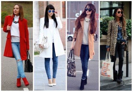 Many girls wear jeans or sportswear under a straight coat. In this case, you need to remember that the coat should be of medium length or shortened. A long thing will look out of place. But the rest of the clothing options are best selected by color and print.