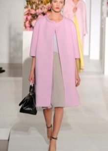 An important role in choosing a coat is played by the fabric. Today, for sewing a coat of direct silhouette, natural, synthetic or mixed fabrics are used. This season, models of a straight silhouette coat of tweed, mink, jacquard coats are relevant.