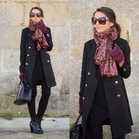 The popularity of these shades of coats today is due to the fact that fashion houses are expanding the boundaries of fashion shows, including in them every season some fashion trends from past shows. Screaming tones should not be chosen. But you can combine other colors, such as a black coat and a long scarf in bright colors.