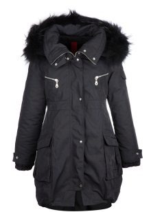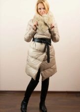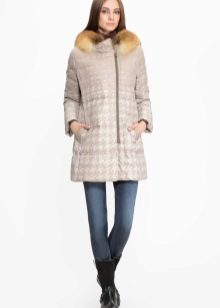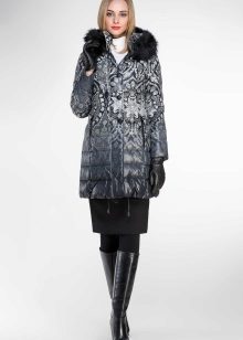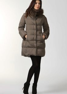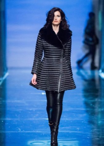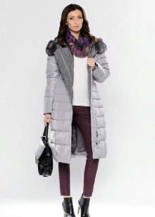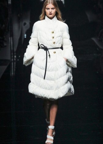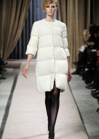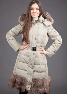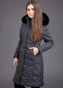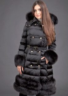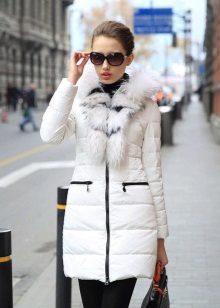 The most common models of straight and fitted silhouettes. The color is usually monochrome, with a smooth shoulder line. Knee length and slightly lower. For decoration, fur is used, which can match in color or contrast with the main product.This looks especially beautiful on a white down jacket, trimmed, for example, with silver fox.