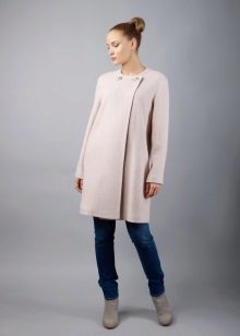 Cocoon coat - This is a concise model, wide at the top and tapering down. Such a coat is characterized by a voluminous collar of an original form and welt pockets.