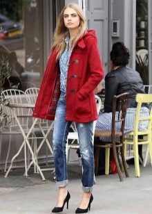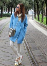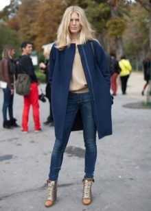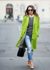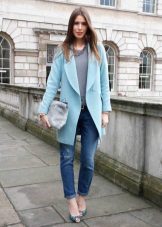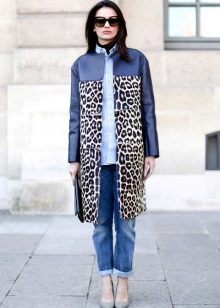 On a typical day with such a coat, you can wear jeans, a bright-colored blouse and platform shoes.Such a coat can be worn, both unfastened and buttoned.
