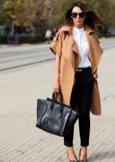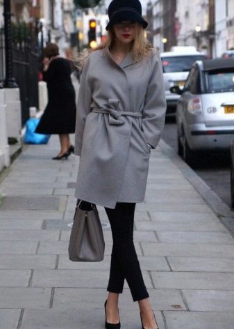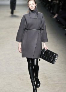 The graceful silhouette has a wraparound coat. It looks especially elegant in light colors - beige and powdery. Fitted dresses, strict trousers, leggings and shorts are well suited for him. High suede boots with heels will harmoniously complement this look.