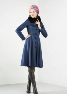 But the flared coat to the bottom is well suited for an evening walk. Girls under him usually pick up fluffy skirts. An additional accent, in the form of a bag on a long strap, will add style to this image.